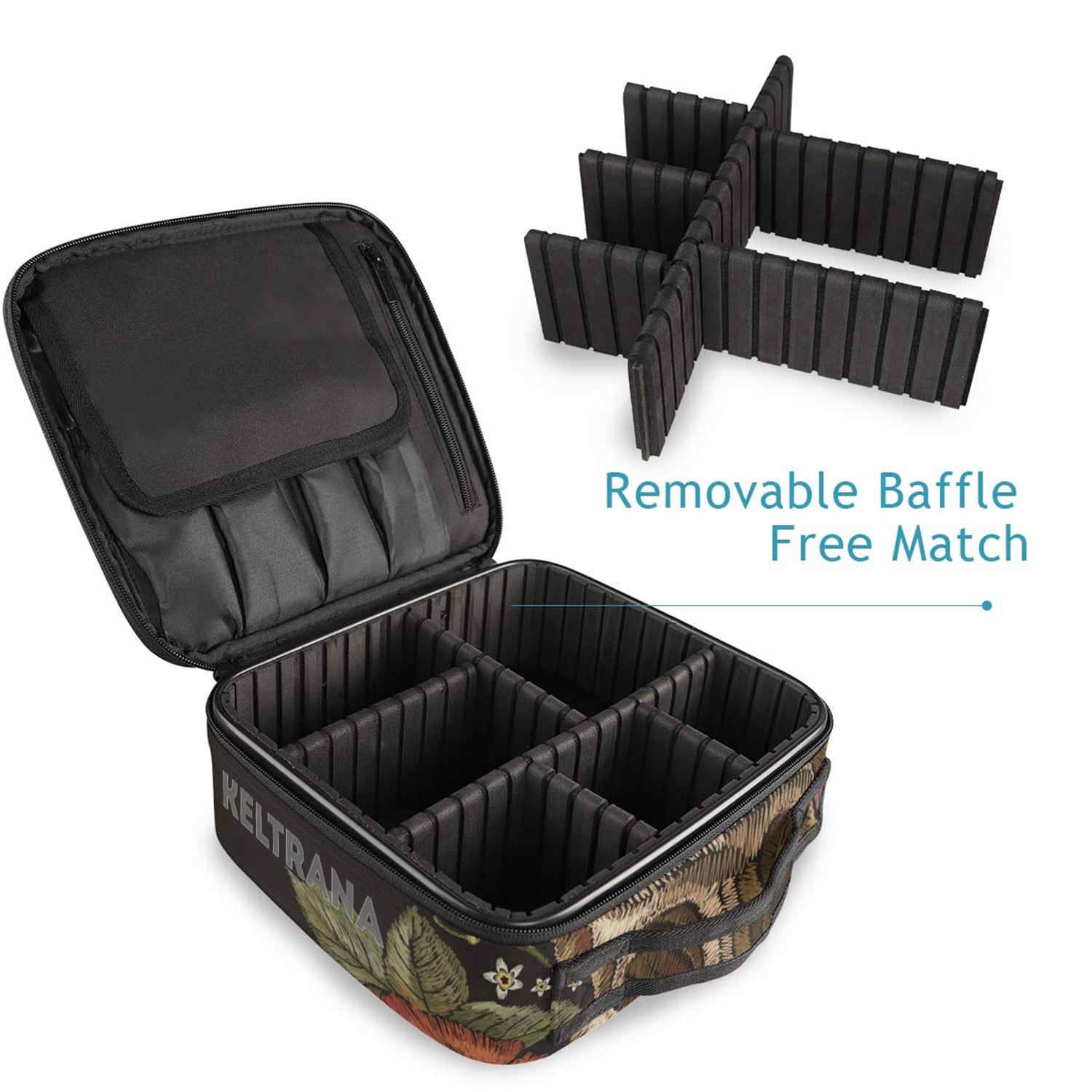 Keltrana Travel Makeup Case Day of The Dead Skull Rose Humming Bird Dia Muertos Cosmetic toiletry Travel bag for Women Girls